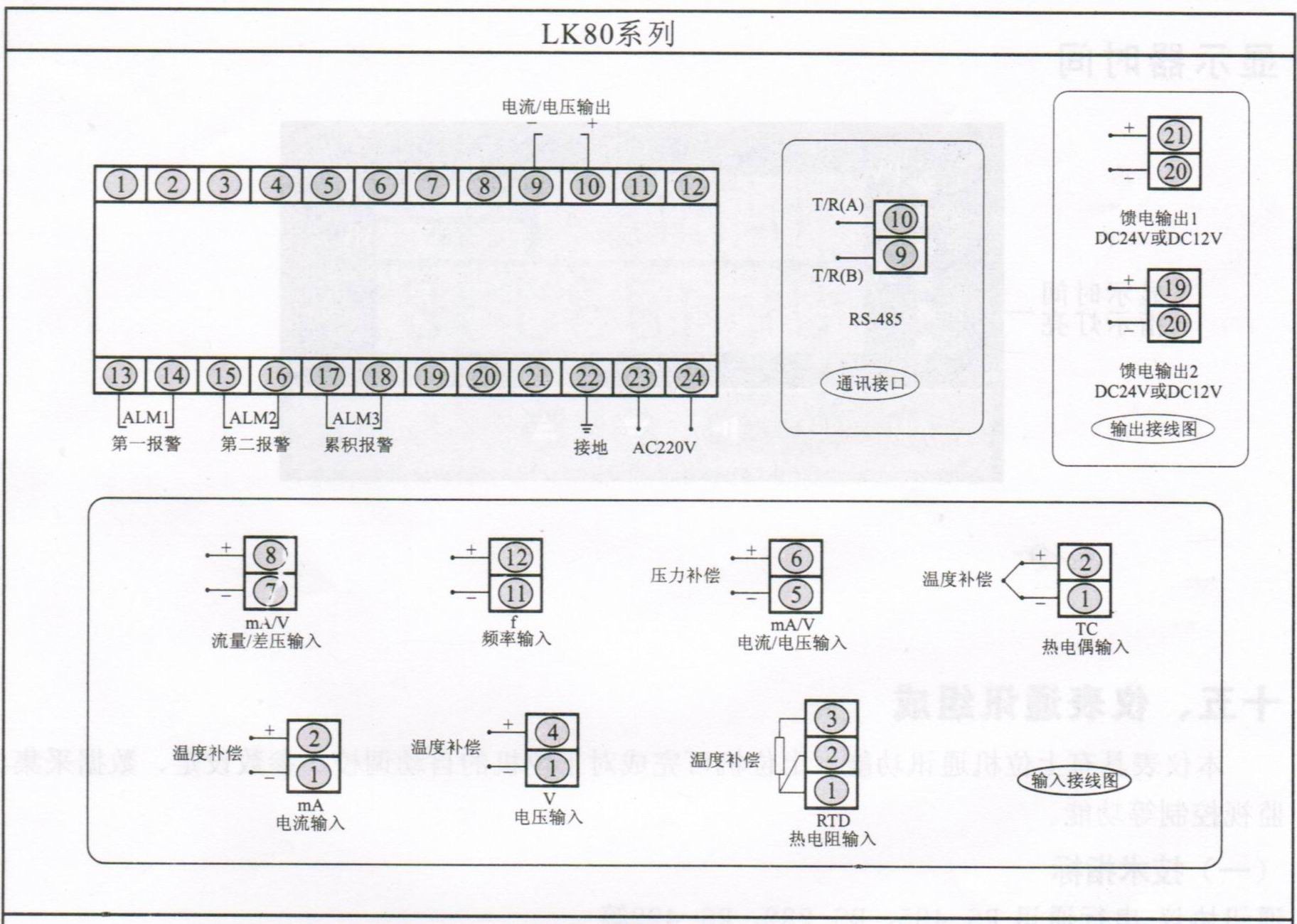 注:①采用Pt100铂电阻输入时,应三线制接法。②采用Pt1000铂电阻输入时,只需二线制接法。